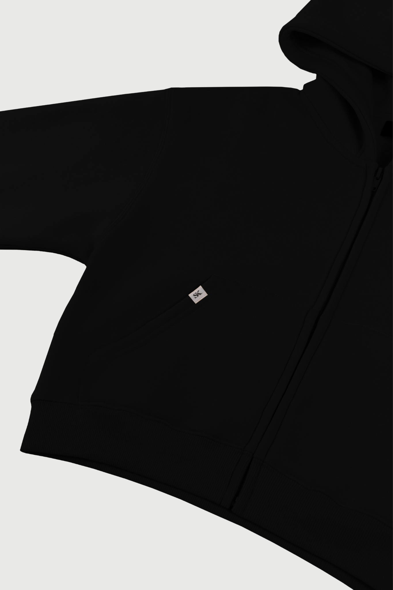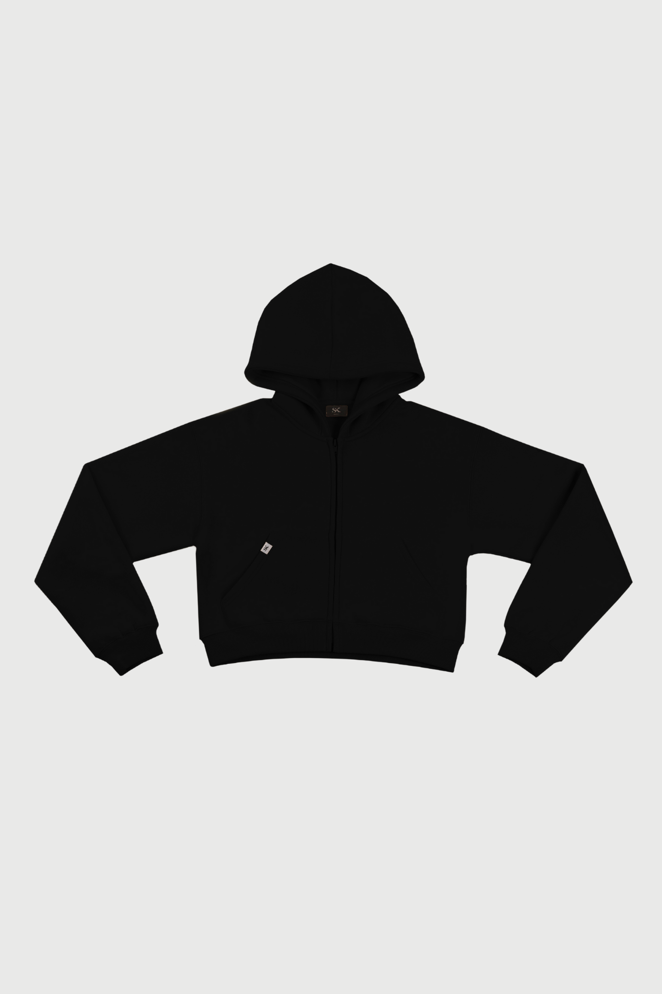 Long sleeve cotton-blend fleece hoodie. Cropped length. Dropped shoulders. Zip closure and kangaroo pocket. Tonal embroidered logo at the arm. Rib-knit cuffs and hem.